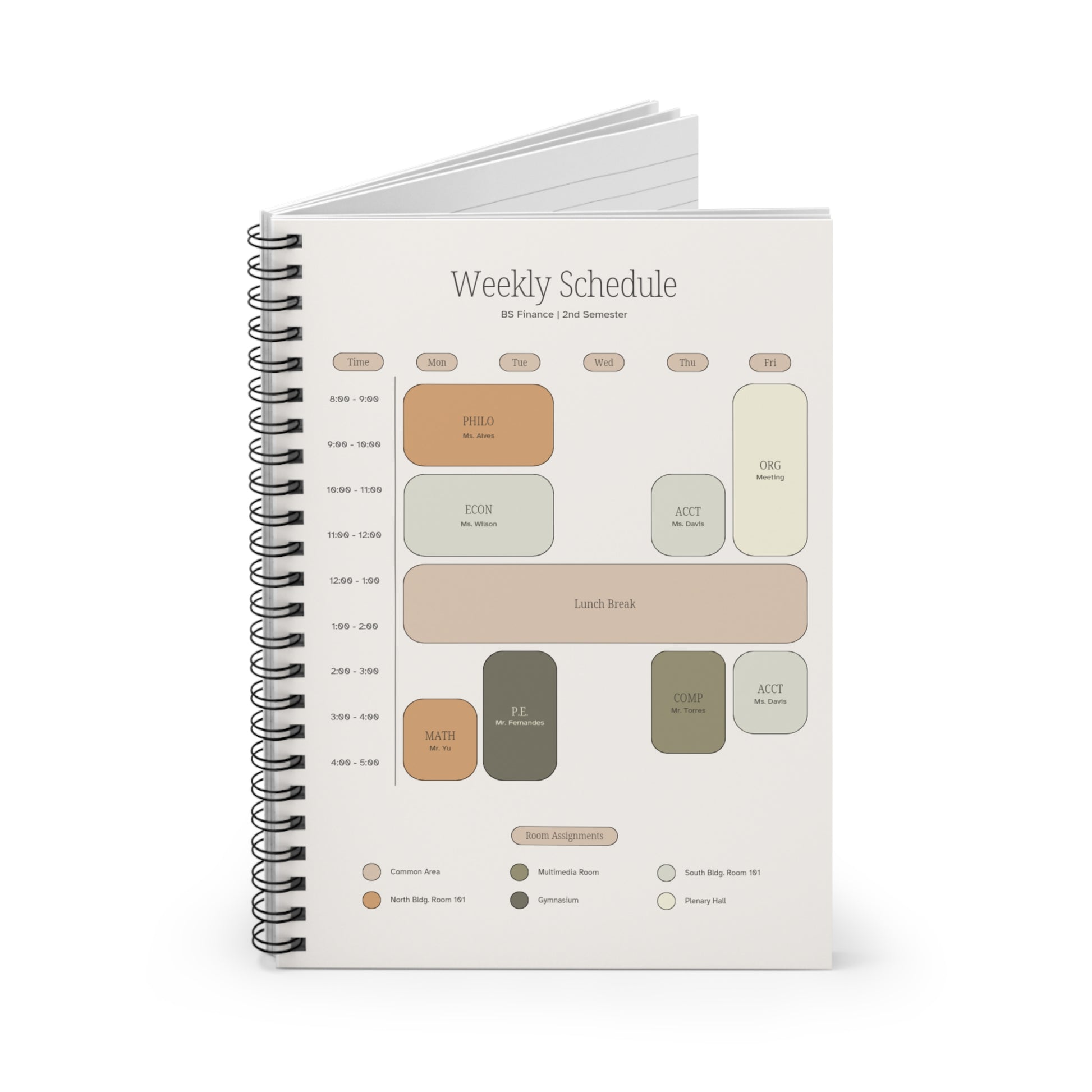 Finance Major Weekly Schedule Spiral Notebook, Ruled Line, College Student Planner, Budget Tracker Journal, Study Organizer, Academic Diary