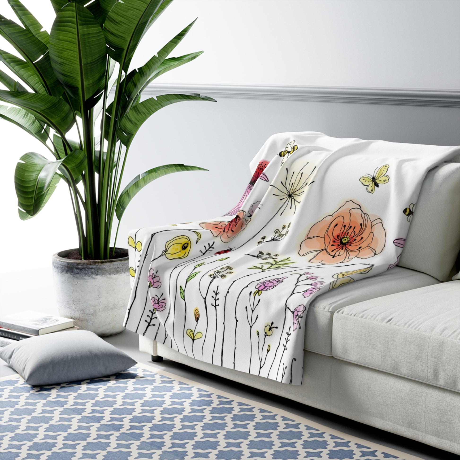 Floral Sherpa Fleece Blanket, Cozy Teen College Kid Gift, Soft Warm Throw, Home Decor Accent, Dorm Room Essential, Winter Blanket