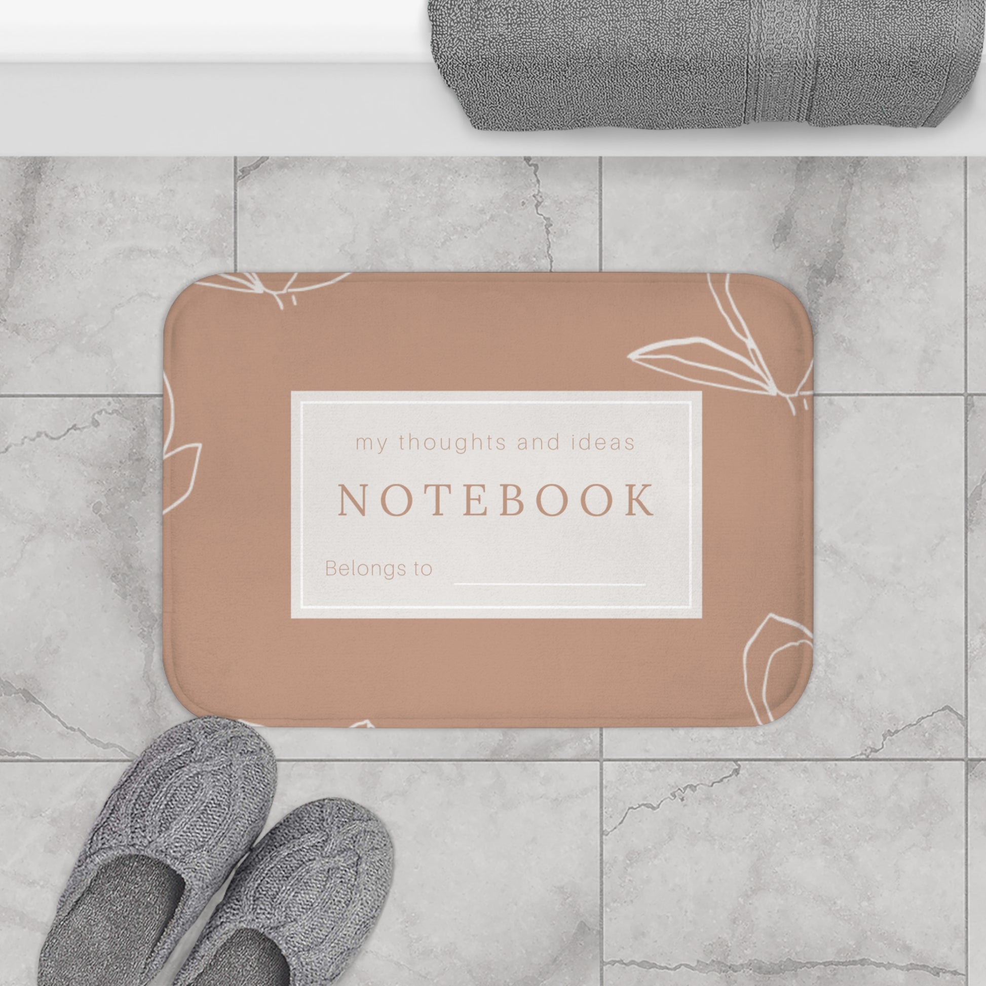 Notebook style bath rug, mauve aesthetic print, teen bathroom has shower curtain sold separately